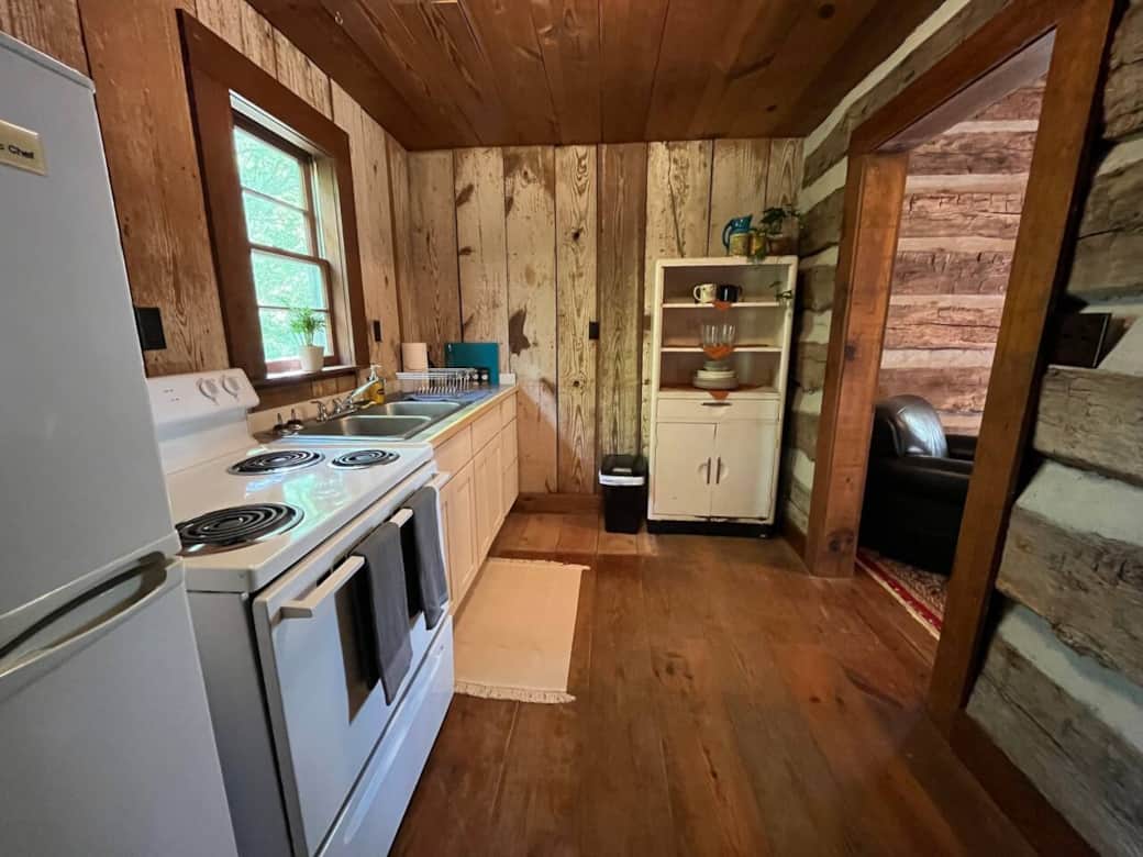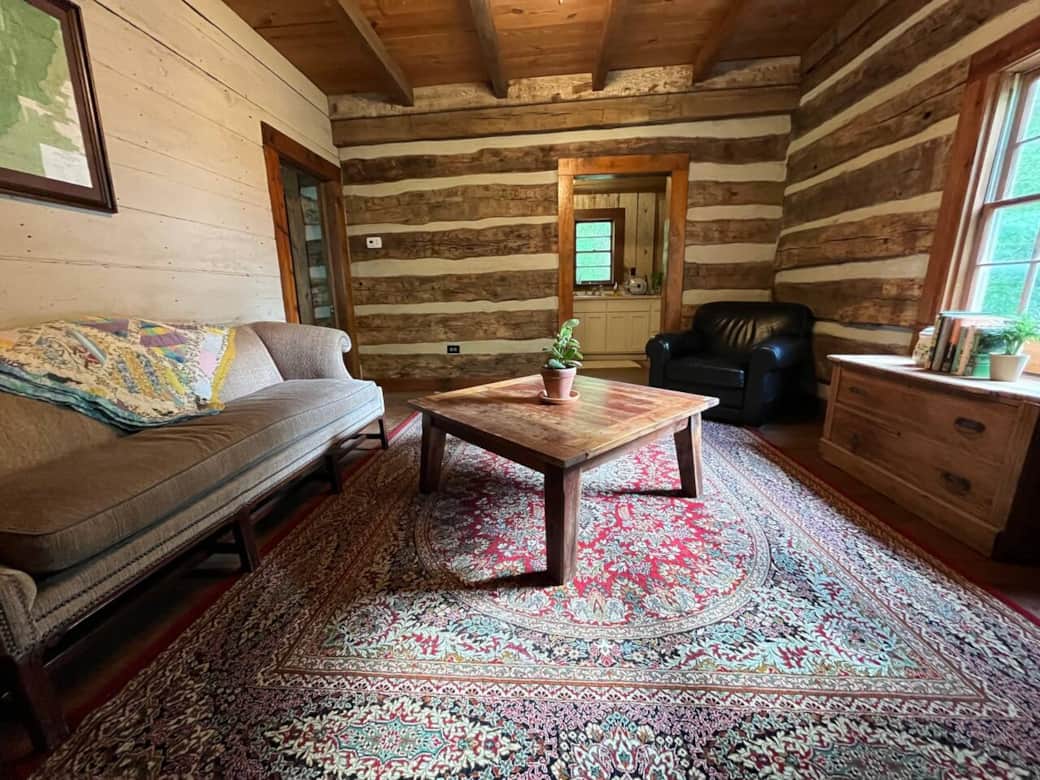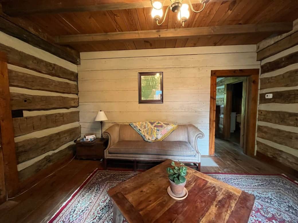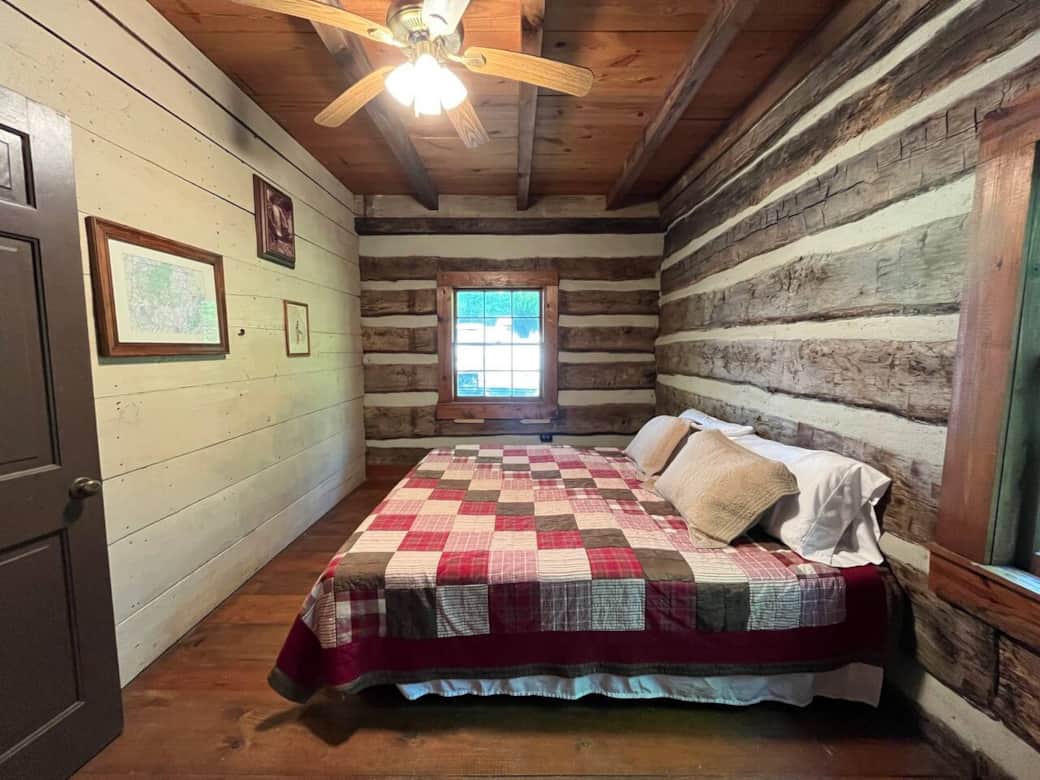 Experience the mountains of North Georgia at this full-time homestead! One of four historic cabins on our property, located just 10 minutes from Fort Mountain State Park, 25 minutes from Ellijay, and 45 minutes from Blue Ridge. Come enjoy hiking, mountain biking, local history, or simply relax by the creek that borders the property. The hosts and their dogs are happy to let you enjoy your stay in peace, or to visit and tell you more about the area! The cabin is set on a 8 acre property, along with three other rental cabins, all original log cabins from the late 18th, early 19th century. The hosts live on the property, along with their friendly dogs. You’ll likely see them working outside, whether it be in the garden or with the chickens. Everything is easy to find in this cozy one story. There is a kitchen stocked with some essentials for cooking meals and a living room furnished for relaxation. The bedroom has a king bed and connects to a full bathroom. There are books, puzzles, and games for entertainment! The front porch looks out on the back section of woods, and while two of the three other cabins are visible from the porch, there is a unique sense of privacy. Guests are welcome to explore all 8 acres! There is a stream that borders an edge of the property and a parcel of woods that is great for walking. If you prefer to hang close to the cabin, there is a fire pit for roasting marshmallows and a hammock nestled into the tree line. At least one of the four hosts will likely be on the property at any given time. Feel free to reach out through the app if you need anything, or flag us down if you see us outside! We are located an hour and a half north of Atlanta and just about an hour southeast of Chattanooga. Ellijay, the mountain biking capital of Georgia, is less than a half hour’s drive, and we are just two miles from the Pinhoti Trail. In addition to hiking and mountain biking there are historical sites, breweries, small mountain towns, and endless taquerias within a half an hour in any direction. If you happen to forget anything, feel free to check with the hosts, or visit the local grocery stores, all 10-15 minutes away. All four cabins are located along a gravel driveway and are easily accessible by any vehicle. Look for the door color to indicate which cabin you’ll be staying in! One or two cars can easily be parked in front of each unit. These cabins are special to us! They are historic, old, rough around the edges, and beautiful. We hope you think so, too!