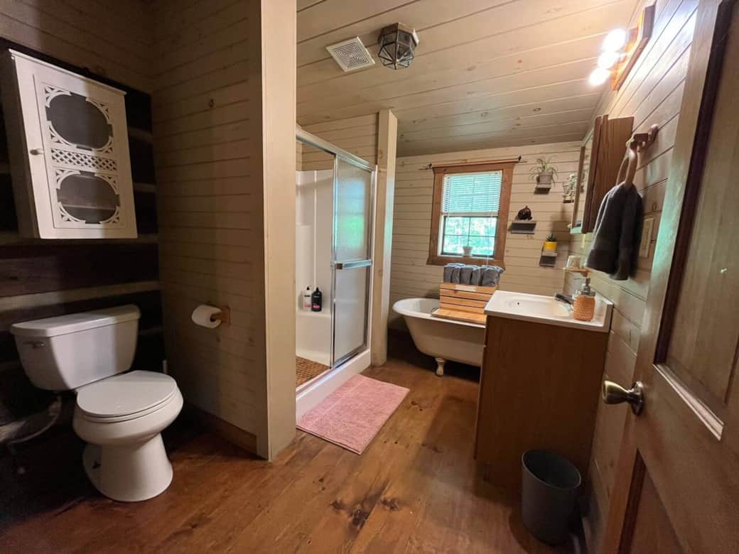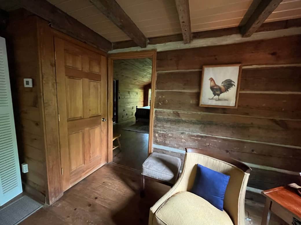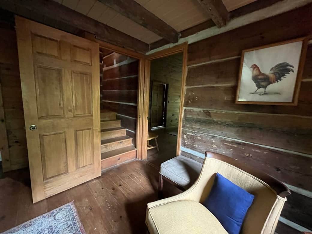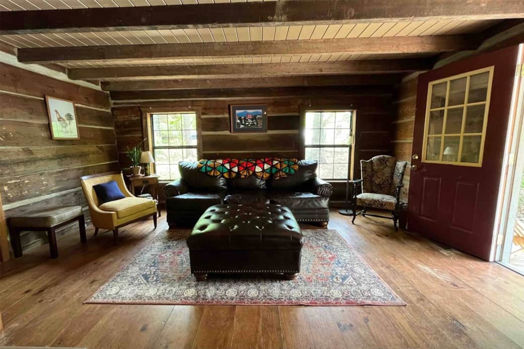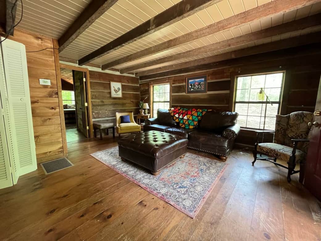 Experience the mountains of North Georgia at this full-time homestead! One of four historic cabins on our property, located just 10 minutes from Fort Mountain State Park, 25 minutes from Ellijay, and 45 minutes from Blue Ridge. Come enjoy hiking, mountain biking, local history, or simply relax by the creek that borders the property. The hosts and their dogs are happy to let you enjoy your stay in peace, or to visit and tell you more about the area! The cabin is set on a 8 acre property, along with three other rental cabins, all original log cabins from the late 18th, early 19th century. The hosts live on the property, along with their friendly dogs. You’ll likely see them working outside, whether it be in the garden or with the chickens. On the first floor you’ll find a kitchen stocked with some essentials for cooking meals, and a living room furnished for relaxation. There is a big screen Smart TV on which you can stream your favorite movies and shows, and even a DVD player/DVD collection if you prefer to kick it old school. The downstairs bedroom is furnished with two full size beds and you’ll quickly notice that the bathroom is only accessible by walking through this bedroom! Upstairs is the master bedroom with one queen bed. The front porch looks out on the chicken coop, and while the three other cabins are all visible from the porch, there is a unique sense of privacy. Guests are welcome to explore all 8 acres! There is a stream that borders an edge of the property and a parcel of woods that is great for walking. At least one of the four hosts will likely be on the property at any given time. Feel free to reach out through the app if you need anything, or flag us down if you see us outside! We are located an hour and a half north of Atlanta and just about an hour southeast of Chattanooga. Ellijay, the mountain biking capital of Georgia, is less than a half hour’s drive, and we are just two miles from the Pinhoti Trail. In addition to hiking and mountain biking there are historical sites, breweries, small mountain towns, and endless taquerias within a half an hour in any direction. If you happen to forget anything, feel free to check with the hosts, or visit the local grocery stores, all 10-15 minutes away. All four cabins are located along a gravel driveway and are easily accessible by any vehicle. Look for the door color to indicate which cabin you’ll be staying in! One or two cars can easily be parked in front of each unit. These cabins are special to us! They are historic, old, rough around the edges, and beautiful. We hope you think so, too!
